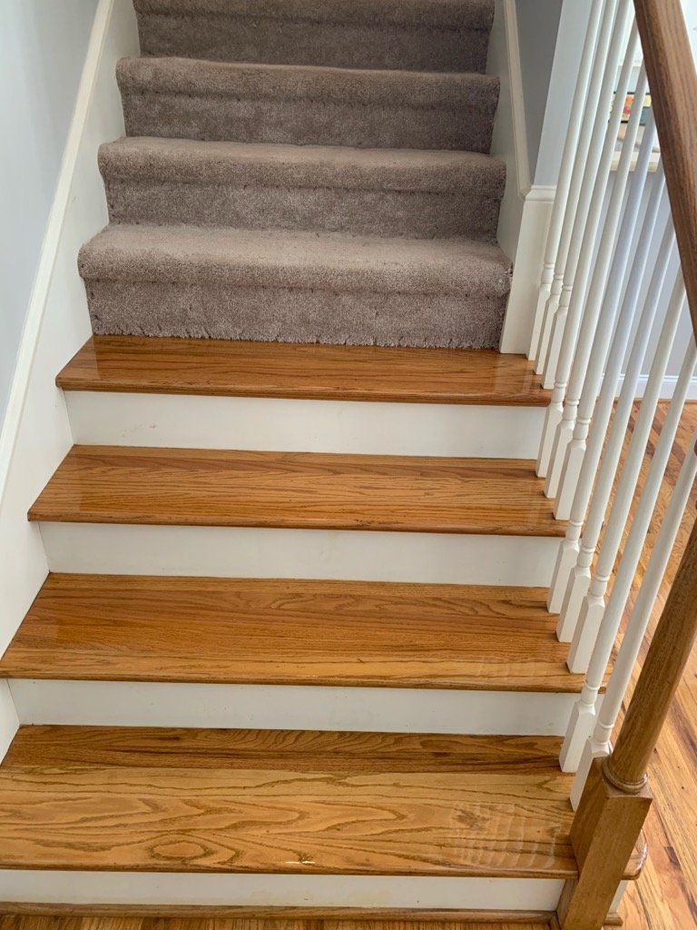 Let us transform your carpeted staircase into an updated and modern wooden staircase! We can also refinish your wooden stair case to remove scuff marks.